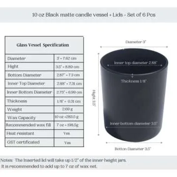 Show moreIntroducing the exquisite LuxyM 10 Oz Black Matte Candle Jars, a luxurious solution for all your candle-making needs. This stunning set of 12 jars not only serves as the perfect vessel for your favorite scents but also elevates your home decor with its sleek, modern design. Crafted from high-quality glass, each jar features a beautiful matte black finish that will seamlessly blend into any ambiance, enhancing the aesthetic appeal of your space. The accompanying black matte metal lids provide a snug fit to preserve your candle's fragrance while ensuring a chic presentation.