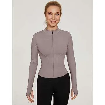 LUYAA Women's Workout Jackets Lightweight Zip Up Yoga Jacket Cropped Athletic Slim Fit Tops Lunar Rock M