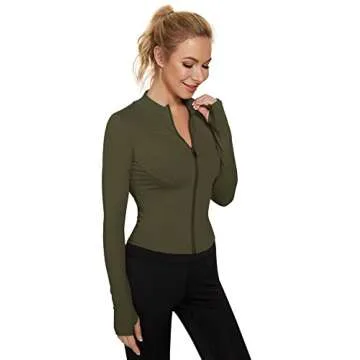 LUYAA Womens Athletic Full Zip Up Jacket Tight Slim Fit Workout Jackets Long Sleeve Running Active Tops Army Green M