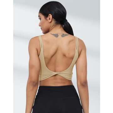 LUYAA Womens Workout Sports Bras Backless Padded Yoga Tank Tops Crop Twist Low Back Cami Bra for Gym