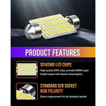 LUYED 578 LED Bulb 569 211-2 212-2 41mm LED Lights Bulb for Car Interior Dome Map License Plate Courtesy Lights, Xenon White,Pack of 4