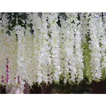 Luyue 3.18 Feet Artificial Silk Wisteria Vine Ratta Silk Hanging Flower Wedding Decor,6 Pieces,(Off-White)