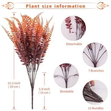 LUZOGA 12 Bundles Fall Artificial Plants Fake Boston Ferns Autumn Outdoor UV Resistant No Fade Faux Plastic Plants Garden Porch Window Box Decorating