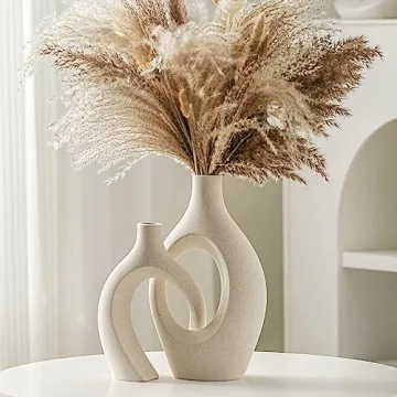 Lvases Snuggle Hollow Handmade Ceramic Vase Set of 2, Unique Decorative Vases for Boho Home Decor (Cream)