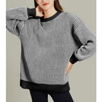 lvatr Chenille Sweater Cozy Striped Pullover for Women