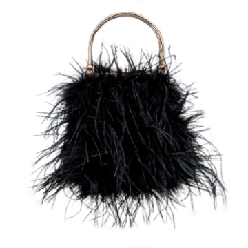 LVCOMEFF Women Evening Purse - Luxury Ostrich Feather Handbag with Gold Handle