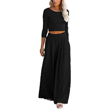 The pajama pants feature an elastic high waist and a full-length cut that provides a roomy feel without sacrificing style. With two side pockets and a chic pleated palazzo design, these pants ensure you never feel constricted. Crafted from a high-quality Sports Polyester fiber, our set is not only soft and lightweight but also breathable, making it ideal for lounging or casual outings.