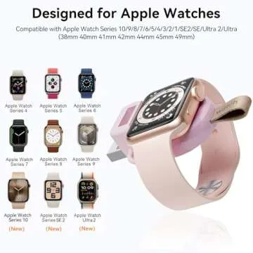 LVFAN Charger for Apple Watch, Portable iWatch Charger USB Wireless Charger Fast Charging Magnetic Cordless Car Travel Charger for Apple Watch Series 10 9 8 7 6 5 4 3 2 1 SE Ultra 2 Ultra (Pink)