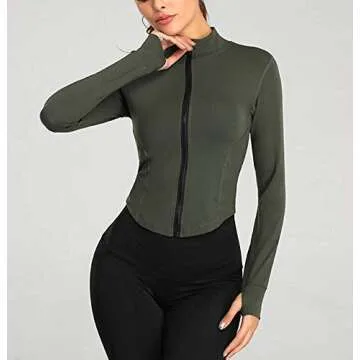Featuring elastic sleeve cuffs with thoughtful thumb holes, you can maintain excellent coverage and warmth during your workouts or outdoor activities. This jacket seamlessly transitions between yoga, sports, training, running, exercise, gym sessions, hiking, or even just some relaxing moments at home.