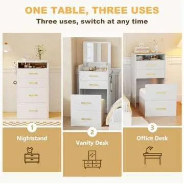 Lvifur 3-in-1 Vanity Desk with Flip Top Mirror, Makeup Vanity Table with Cushioned Stool for Small Space, Compact Dressing Table, Vanity Set for Bedroom