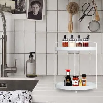 Lvssci 2 Tier Corner Shelf Rack Kitchen Counter Cabinet Bathroom Organizer Makeup Cosmetic countertop Organization and Storage Under Sink Organizers Perfume Trays for Dresser White