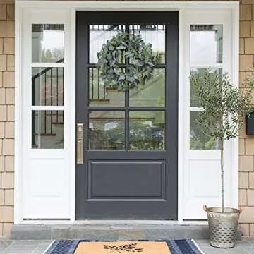 Show more Introducing the Lvydec Artificial Eucalyptus Wreath, a stunning 20-inch decorative accessory designed to elevate the aesthetics of your home or event effortlessly. Crafted with intricately designed faux eucalyptus leaves and realistic seeds, this beautiful wreath adds a touch of timeless elegance to any setting. Unlike natural wreaths, this artificial piece maintains its vibrant color and exquisite design all year round, bringing a refreshing and romantic atmosphere to your décor. Whether you want to make a bold statement on your front door or enrich your indoor spaces, this wreath does it all without the worry of wilting or fading.