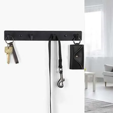 Lwenki Key Holder for Wall, Key Rack with 4 Key Hooks to Hang Keyrings, Dog Leash, Umbrella, Sunglasses – Key Hanger with Mounting Hardware for Glass, Tile and Wood (10.9” x 1.4” x 1.0”) (Black)
