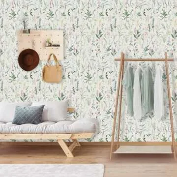 LwenSnow Floral Peel and Stick Wallpaper Green/Pink Retro Flower Type Self-Adhesive Temporary Wall Paper Roll Removable Decorative Contact Paper for Cabinet Living Room Decor 17.7" x 118" 14.5 sq.ft
