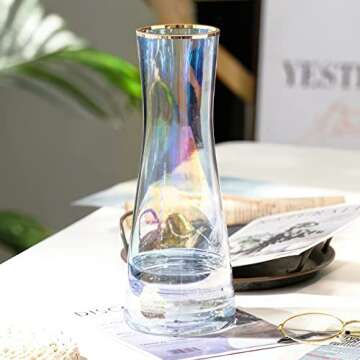 When pitted against other glass vases on the market, the **LWXPAIYY Iridescent Glass Vase** stands out not just for its stunning visual appeal, but also for its quality and craftsmanship. Competitor vases often lack the same level of attention to detail, resulting in a more fragile and less stable design. The thickened base of our vase offers enhanced stability, making it a practical choice for any environment, unlike thinner, easily tipped alternatives. Moreover, its unique iridescent finish and gilded rim elevate it from mere functionality to a piece of art, making it a conversation starter in any setting.