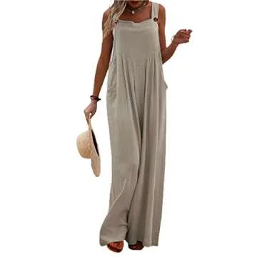 LWXQWDS Wide Leg Overalls for Women Sleeveless Jumpsuits Suspender Overalls Loose Comfy Baggy Button Rompers with Pockets (Khaki, Small)