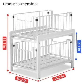 Lxmons 2 Tier Sliding Basket Drawer Organizer, Pull Out Under Sink Cabinets Organizers, Metal Home Shelf for Bathroom or Kitchen, Sliding Countertop or Pantry Storage Shelf, Large White