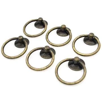Show moreElevate your home decor with the stunning LXZ 6 PCs Cabinet Hardware Drop Ring Pulls. These exquisite antique brass drawer pulls capture the essence of vintage charm while providing the durability needed for daily use. Crafted from a premium blend of iron and high-quality zinc alloy, each pull is designed with a retro aesthetic that beautifully complements any furniture style. With a disk base diameter of 1 inch (2.5 cm) and a ring diameter of 1-11/64 inches (4.3 cm), these pulls not only add character but also ensure a comfortable grip, making it effortless to open cabinets and drawers.