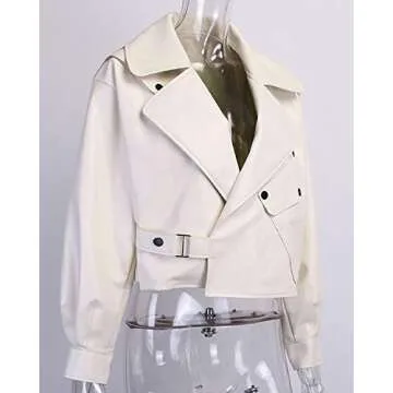 LY VAREY LIN Women Black Faux Leather Jackets Casual Short Oversized Coat Asymmetrical Motor Biker Jacket