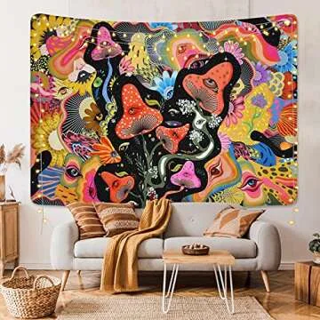 Lyacmy Mushroom Tapestry Psychedelic Eyes Tapestries Trippy Tapestry Colorful Flowers Tapestry Wall Hanging for Room(70.9 x 92.5 inches)