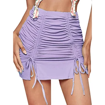 Show moreIntroducing the stunning LYANER Women's Casual Drawstring Ruched Split Hem Ribbed Mini Short Skirt in a captivating purple hue, designed to be your new go-to piece for every occasion! This skirt combines comfort, style, and versatility, thanks to its elastic waist and ribbed knit fabric. With the innovative two-side drawstring feature, you can easily customize the length to suit your mood – wear it knee-length for a chic daytime look, or scrunch it up for a fun mini vibe during nights out. Say goodbye to wardrobe dilemmas and hello to seamless transitions from laid-back to polished looks!