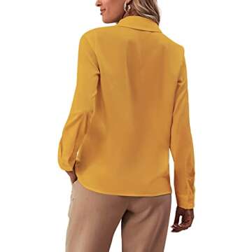 LYANER Women's Collar Neck Button Down Ruffle Front Long Sleeve Blouse Shirt Top Ginge Medium