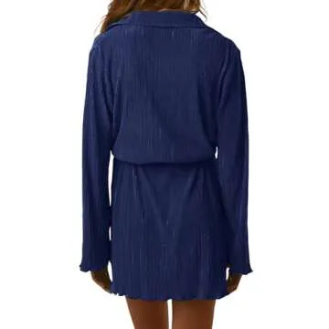 Show more If you're on the hunt for an essential piece that balances chic elegance with effortless comfort, the LYANER Women's Collar V Neck Button Down Pleated Long Sleeve Mini Shirt Dress in Navy Blue is your go-to choice. Crafted from a soft and lightweight fabric, this dress is perfect for any occasion, whether you're dressing up for a night out or keeping it casual during the day. The easy-flowing nature of this mini dress makes it feel like a second skin, draping beautifully with every movement. It's an all-in-one solution for the modern woman looking to enhance her wardrobe with versatility.