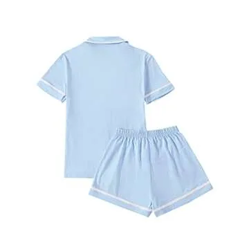 LYANER Women's Cotton Pajamas Set Button Short Sleeve Shirt with Shorts Set PJs Loungewear Blue X-Small