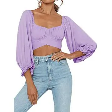 LYANER Women's Cute Off Shoulder Long Sleeve Self Tie Knot Crop Tube Top Blouse Lavender Small