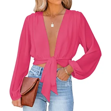 Show moreIntroducing the LYANER Women's Deep V Neck Tie Front Knot Long Sleeve Sexy Wrap Crop Top Blouse, a wardrobe essential that beautifully merges style, comfort, and versatility. Crafted with meticulous attention to detail, this stunning piece features a magnificent deep V-neck design that flatteringly accentuates your neckline, paired with long puff sleeves that add a playful touch to your silhouette. Made from a skin-friendly, breathable, and soft fabric, you can expect all-day comfort while making a bold fashion statement.