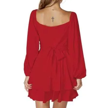 Show moreIntroducing the LYANER Women's Lantern Long Sleeve Wrap Tie Back Square Neck Double Layer Ruffle Hem A Line Short Mini Dress, the ultimate addition to your wardrobe this season! Designed with a charming square neck and flowy lantern long sleeves, this dress offers a delightful blend of style and comfort. The empire waist design elegantly highlights your figure, while the wrap front and bow knot back add a playful touch to your look. Crafted from lightweight yet breathable fabric, this dress is perfect for enjoyable outings or special occasions. Whether you’re heading out to a summer party or going for a romantic date, this dress promises to be your go-to choice!