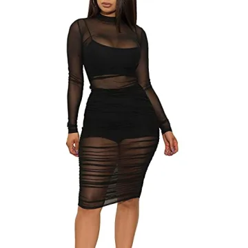 Show moreTransform your wardrobe with the exquisite LYANER Women's Mesh Dress Long Sleeve Bodycon 3 Piece Outfit in elegant black. This exceptional set comes with a chic mesh cover-up midi dress, a stylish spaghetti strap vest, and comfortable shorts, perfectly designed to make you the focal point of any gathering. Crafted from high-quality, soft-touch stretchy fabric, this outfit ensures all-day comfort while accentuating your figure with its figure-hugging bodycon style. Whether you're stepping onto the dance floor at a club or enjoying sophisticated dinner parties, this ensemble promises not just comfort but a stunning look that shines.