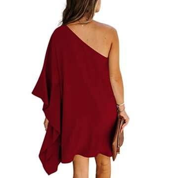LYANER Women's One Shoulder Batwing Sleeve Asymmetric Hem Mini Dress #Wine Red Small