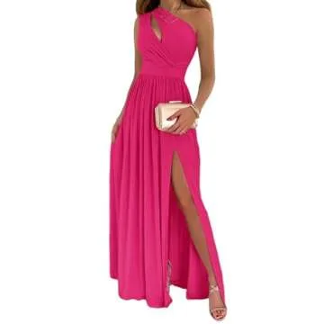 LYANER Women's One Shoulder High Split Cutout Sleeveless Elegant Party Maxi Dress Solid Rose X-Large