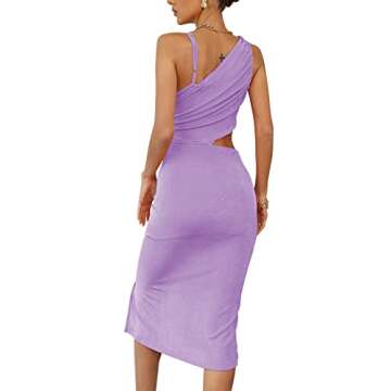 LYANER Women's One Shoulder Ruched Cut Out Split Slit Hem Sleeveless Bodycon Tank Short Dress Purple X-Small