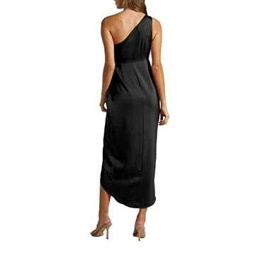 Discover the elegance of the LYANER Women's One Shoulder Ruched Sleeveless Split Wrap Hem Zipper Midi Dress. This stunning black midi dress combines a chic one-shoulder design with a flattering silhouette to create a show-stopping look for any occasion. Crafted from a lightweight and breathable fabric, this dress gracefully hugs your curves while providing ultimate comfort and style. Its below-knee length and exquisite wrap hem give it a sophisticated touch, ensuring you look and feel fabulous...