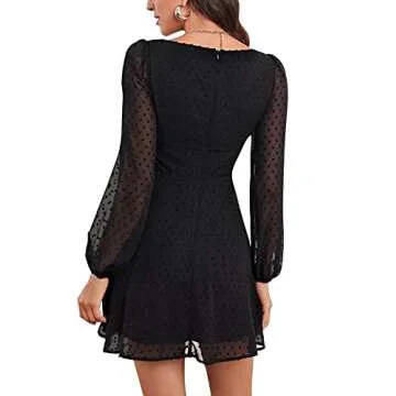 Show moreDiscover the perfect blend of style and comfort with the LYANER Women's Polka Dots Square Neck A-Line Long Sleeve Mini Dress. Designed for modern women, this chic black mini dress features an eye-catching square neck and delicate swiss dot fabric, elevating your wardrobe with its unique flair. The breathable, skin-friendly material ensures a soft touch for all-day comfort, making it an ideal choice for various occasions. Whether you’re stepping out for an elegant evening, a casual day out, or need a go-to outfit for work, this versatile dress adapts to your plans effortlessly.