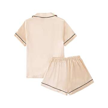 LYANER Women's Satin Pajamas Set Short Sleeve Button Shirt Silky Sleepwear with Shorts Set PJ Champagne Small