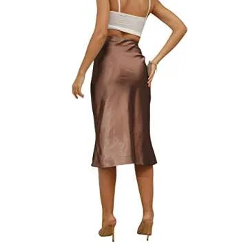 Show moreIntroducing the LYANER Women's Satin Silk High Waist Side Zipper Up Ruffle Hem Flared Midi Skirt, an exquisite blend of elegance and comfort designed for the modern woman. Crafted from high-quality satin silk, this skirt boasts a luxurious feel and a stunningly smooth finish that creates an eye-catching silhouette. The high waist design not only flatters your figure but also elongates your legs, making you appear slimmer and more refined. The skirt features a side invisible zipper, ensuring ease of wear, and a fashionable ruffle hem that adds a playful touch to your outfit. With a below-knee length, it's an ideal choice for both casual outings and more formal occasions, promising versatility like no other.