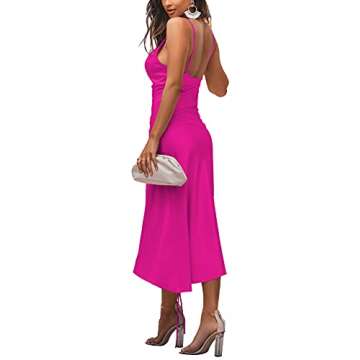 LYANER Women's Satin Spaghetti Straps Cowl Neck Sexy Ruch Cocktail Midi Dresses Rose Red Small