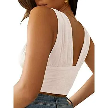 LYANER Women's Sexy Deep V Neck Slim Fitted Strap Crop Cami Tank Sleeveless Top Beige X-Small