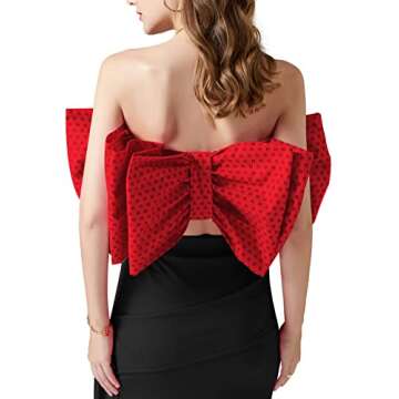 Show moreIntroducing the LYANER Women's Sexy Layer Bow Tie Tube Crop Top, a stunning addition to your wardrobe that effortlessly combines flirtation with fashion. Expertly designed, this strapless, sleeveless tank top features a beautifully crafted layer bow tie on the chest and back, delivering not just style but an enchanting flair that captivates at any gathering. The cheerful red color and fun letter printing give it a playful edge, ensuring you stand out while embracing your inner chic! Perfectly designed for women and girls who want to make a statement, this crop top is set to become your go-to choice for everything from casual outings to special events.