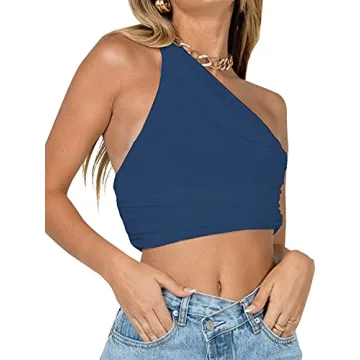 Show moreElevate your fashion game with the LYANER Women's Sexy Ruched One Shoulder Sleeveless Crop Top. This stunning navy cami tank is designed for those who want to showcase their unique style with a hint of allure. Made from high-quality materials, it not only offers a cozy fit but also features flattering ruching that contours beautifully to your body shape. The one-shoulder design adds an element of sophistication and sultriness, making it perfect for a night out or casual daytime wear. With its cropped length, this top pairs perfectly with high-waisted jeans, skirts, or shorts, allowing you to create versatile outfits effortlessly.