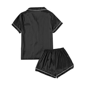 LYANER Women's Striped Silky Satin Pajamas Short Sleeve Top with Shorts Sleepwear PJ Set
