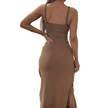 LYANER Women's Tie Knot Cut Out Side Split Hem Sleeveless Knit Bodycon Maxi Dress Brown Small