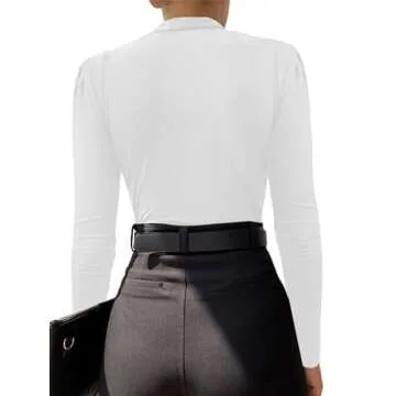 LYANER Women's Wraped V Neck Ruched Long Sleeve Leotard Bodysuit Top White# Small