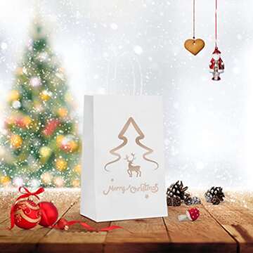 Show moreIntroducing the Lyeasw 25 Pack White Paper Bags with Handles, your ideal companion for all gifting and shopping needs. Crafted from high-quality kraft paper, these versatile small gift bags measure 5.1" x 3.5" x 8.2" and come in a bulk pack of 25, ensuring you have plenty on hand for any occasion. Whether you're hosting a party, running a retail shop, or simply need sturdy bags for personal use, these bags offer both functionality and a blank canvas for your creativity.