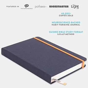 Show more Introducing the Lyfebooks Scribe Bible Journal, a beautifully crafted companion designed to elevate your quiet times and strengthen your relationship with God. This 13-week guided Bible study notebook is not just a journal; it's your partner in forming lasting habits that bring peace and growth into your life. Featured in acclaimed publications like the Christian Post and on Kickstarter, this journal combines proven neuroscience and habit-formation techniques to help you engage more deeply with Scripture. With its elegant navy and green cover made from high-quality cloth fabric, this journal is both durable and visually appealing, making it perfect for everyday use.