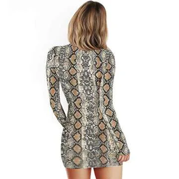 LYKSAW Queen.M Women's Sexy Bodycon Dress Knitting Casual Club Party Slim Short Mini Dress (Snake Skin Print, S)