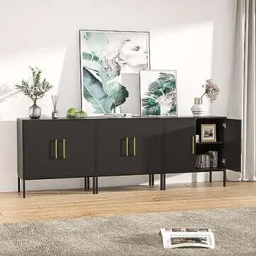 LYNSOM TV Stand for 85 Inch TV, Media Entertainment Center Console Table, 3 Cabinets, TV Console Table with Storage Cabinet for Bedroom, Living Room, Entertainment Room (Black)